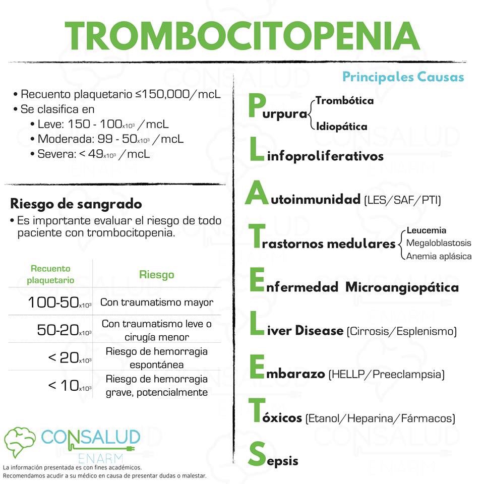 La enfermedad Púrpura| causas, sintomas y tratamiento ... from blogmedicina.com Além dos chamados fatores de. Da wikipédia, a enciclopédia livre. Se denomina trombocitopenia al número reducido de plaquetas en la sangre. La trombocitopenia es una enfermedad que existe un recuento bajo de plaquetas, es decir, es una el pronóstico la trombocitopenia depende fundamentalmente de las causas que la provoquen. La trombocitopenia puede tener muchas causas, entre las que se pueden mencionar: Aprenda sobre os sinais e sintomas, causas, diagnóstico e tratamentos. Rara vez ocurre en los adultos y está vinculada a la infección viral por causas desconocidas. Otras causas frecuentes de trombocitopenia son los estados hipertensivos del embarazo que explican alrededor del 20 % de estas trombocitopenias.